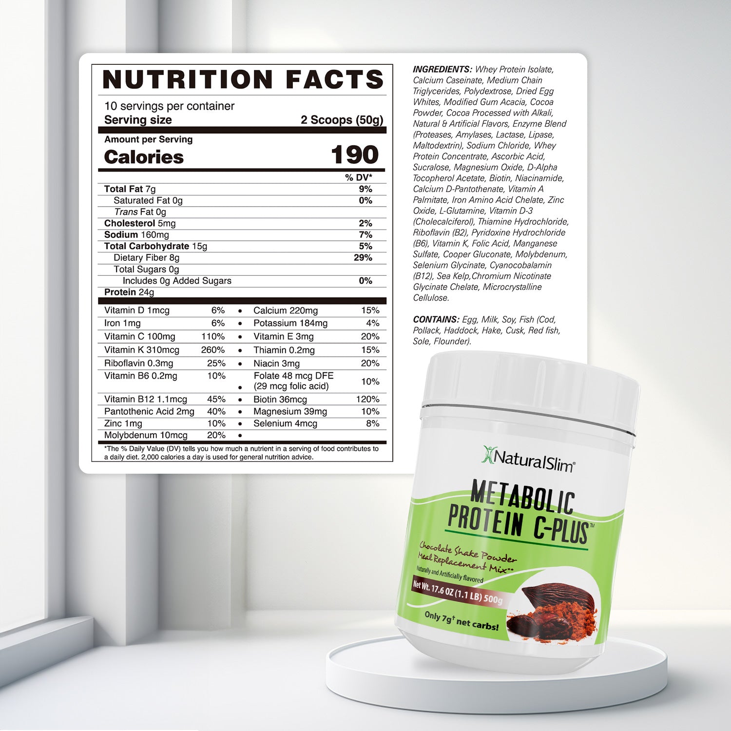 METABOLIC PROTEIN® C-PLUS is our tasty and powerful whey protein shake, now enhanced with Vitamin C. Our Metabolic Protein® C-Plus could replace or supplement your breakfast to help increase your metabolism and reduce hunger^ as it cith a variety of vitamins and essential vitamins and minerals essential vitamins and minerals, which further qualifies it as a meal a meal replacement*. It also contains amino acids that support the control of cravings for sugar, sweets, bread and other refined carbohydrates. It is prepared with water, is low in carbohydrates and comes in vanilla, chocolate and strawberry flavors.